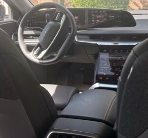 The interior is impressive, featuring a 34-inch, curved glass cockpit display. There are three screens that combine for one unit, located behind the steering wheel and in the center console. Bluetooth, wireless Apple CarPlay and Android Auto, and 9-speaker stereo are standard. Note that Lucid’s software continues to improve, yet it can still be frustrating at times.