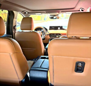 The ease of driving the CX-90 is another plus. It’s quick and handles well, providing more stability than the CX-9. All CX-90s come standard with the following safety features: adaptive cruise, collision avoidance, lane keeping assistance, blind-spot warning, rear cross traffic alert, driver awareness, automatic high beams, rain sensing wipers, and adaptive cruise.